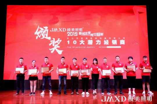 緊接著,舉行了隆重的頒獎環節。“十大潛力經銷商”、“十大鐵桿經銷商”、“十大優秀經銷商”、“十大核心經銷商”悉數登臺亮相。獲獎經銷商代表的訪談環節,他們都對極美照明充滿信心,對鄒總表示感恩。