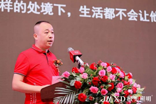 首先由極美照明總經理鄒榮文致辭,他在致辭中分享了六個關鍵詞:感恩、人才、產品、機遇、品牌、服務。