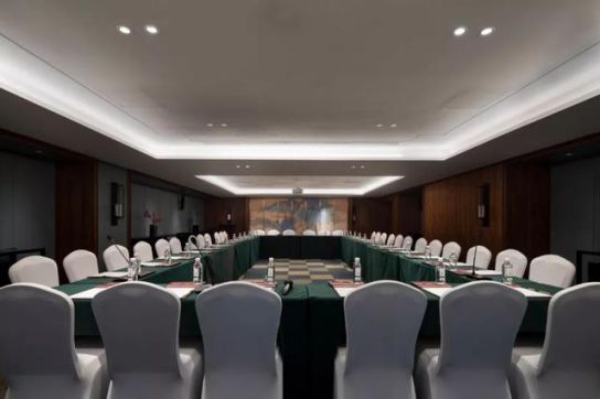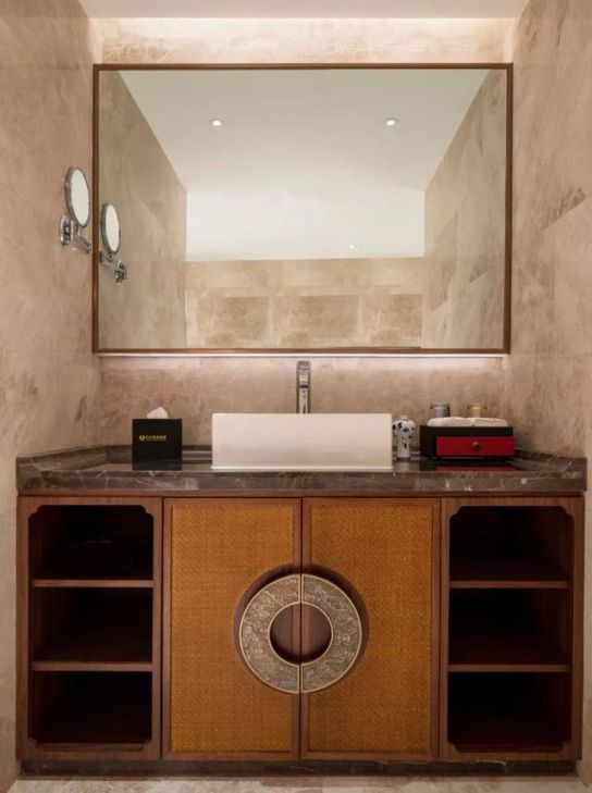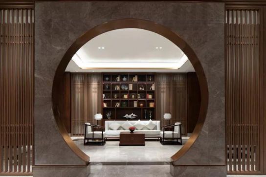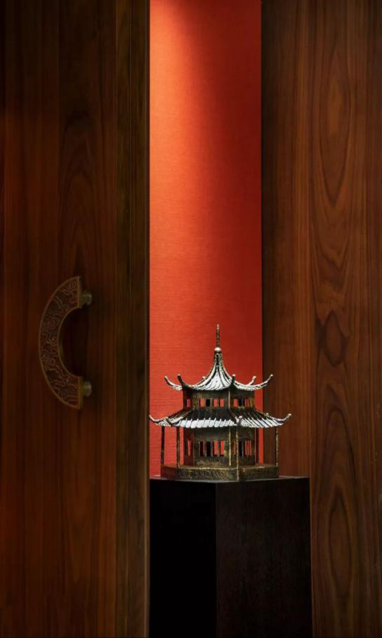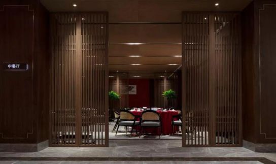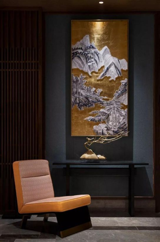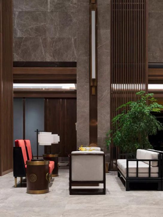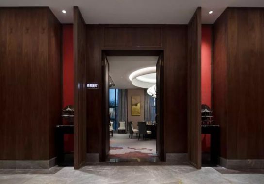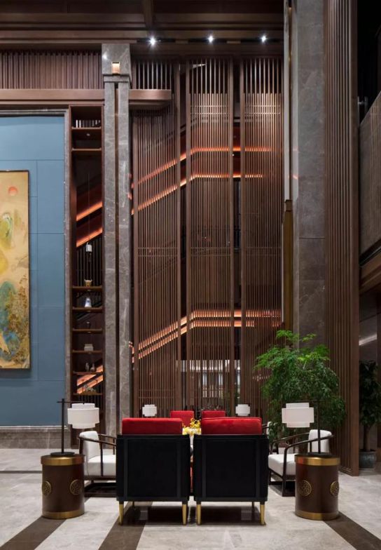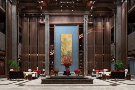 整個(gè)大堂以東方韻味的裝飾設(shè)計(jì)風(fēng)格展現(xiàn)豐富的紅色文化傳承。前廳服務(wù)結(jié)構(gòu)對(duì)稱分布,中軸盡頭將傳統(tǒng)照壁進(jìn)行了改良,成為視覺中心點(diǎn)。室內(nèi)陳設(shè)采用了明、清家具造型和款式特征,并且將中國(guó)尊、鼎、璽、韶樂、書法雕塑融入之中,為大堂空間增添了無限的藝術(shù)張力。