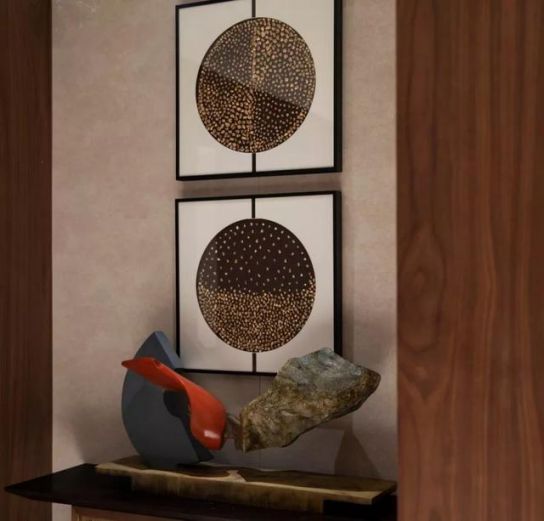 中式古典風(fēng)格,室內(nèi)陳設(shè)沿用了明、清家具造型和款式特征,與藝術(shù)家創(chuàng)作的水墨山水畫作,為房間增添了些許東方神韻,一些點(diǎn)到即止的小擺設(shè)柔和清雅,毫不喧賓奪主。為了不破壞這份舒適的靜謐,只用了少量的燈具“點(diǎn)”嵌在天花中,柔和的光暈將淺淡的天花、厚重的墻面微微洗亮,在大大降低了視覺眩光度的同時(shí)營(yíng)造出溫潤(rùn)、友善的氛圍。