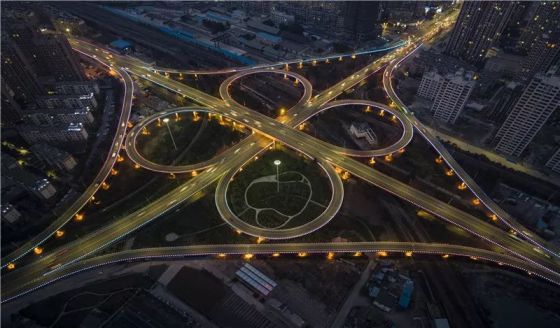苜蓿葉形的解放路勝利路立交橋是蚌埠市重要的交通樞紐。亮化裝置了5000多套點光源勾勒出橋的外檐,像一顆顆彩色的珍珠,為解放路立交橋披上了一身靚麗的外衣。投光燈打亮橋墩,展現出勝利路立交橋磅礴的氣勢,成為城市夜景中一道特別的風景。
