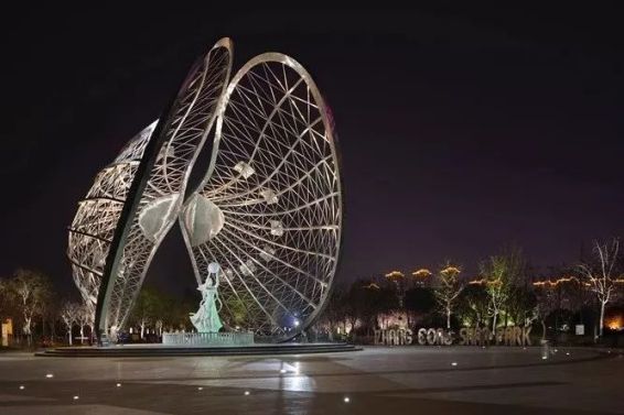 張公山公園位于歷史悠久的張公山風景區內,南門前聳立著創意獨特的雕塑“珠蚌迎賓”,在投光燈下清晰可見全鋼結構的蚌殼,猶如張開雙臂迎接四方來客。