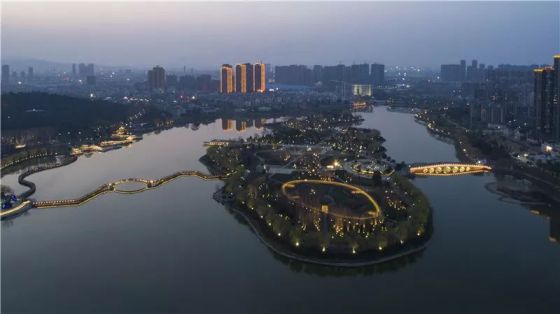 蚌埠最大的濱水公園——龍子湖公園沿美麗的龍子湖而建。 環湖景觀路以庭院燈照明為主,道路一側成行的樹木在LED投光燈的映照下,瀟灑挺秀,營造出自然舒適的溫馨感。