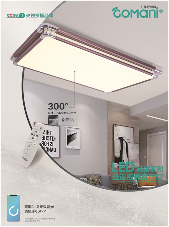 為進一步滿足當代消費者家庭對智慧輕奢客廳的需求,哥曼尼智能照明特別推出基于物聯網技術、有線或無線通訊技術等高科技技術而生的LED輕奢系列智能客廳燈。該系列產品可通過遙控器、手機APP等方式實現智能控制,完成燈光亮度強弱調節(jié)、燈光色調改變、定時控制、場景設置等眾多效果呈現,在極大程度上滿足了當代消費者對智能光照的實際運用與對客廳空間的個性氛圍構造。