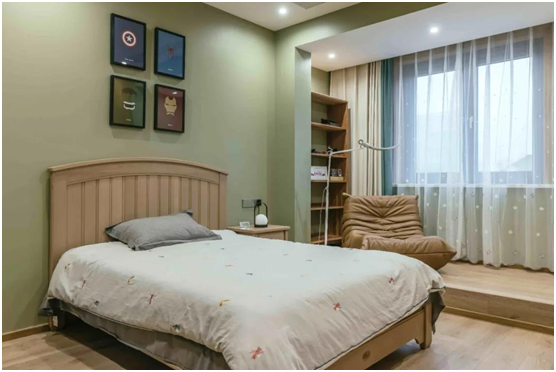 臥室,人在休息時處于一種溫暖柔和的場景氛圍,更容易放松下來。當我們躺在床上,不宜讓直射燈光入眼,于是我將用臺燈、壁燈、筒燈來制造局部照明和美化空間。因為老年人視力減弱,父母的房間便要適當增加一下亮度,讓暗處明亮一些,以免磕絆。
