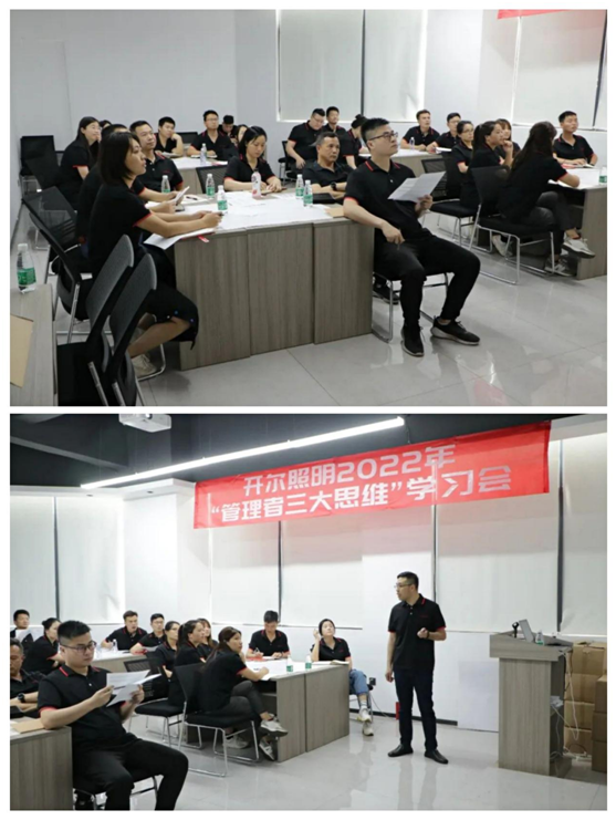 對(duì)于一個(gè)企業(yè)來(lái)說(shuō),管理是至關(guān)重要的,它是公司高效運(yùn)營(yíng)的前提。管理在組織中起著協(xié)調(diào)的作用,能夠與外界的環(huán)境相適應(yīng)。沒(méi)有管理,員工就不能高效地開(kāi)展工作,也就沒(méi)法達(dá)到預(yù)想的結(jié)果。為了提高職能管理人員的管理意識(shí),提升中高層管理人員經(jīng)營(yíng)管理水平和領(lǐng)導(dǎo)力,2022年4月15日,開(kāi)爾照明廣東總部組織各職能部門的管理層參加了行動(dòng)在線商學(xué)院李踐老師的《管理者的三大思維》培訓(xùn)課程。培訓(xùn)圍繞數(shù)據(jù)、成果以及內(nèi)因三大思維的內(nèi)容進(jìn)行了生動(dòng)有趣的講解。