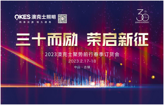 “三十而勵(lì)·榮啟新征”——澳克士照明2023春季新品訂貨會(huì)將于2023年2月18日在中山古鎮(zhèn)東方碧熙酒店隆重舉行。