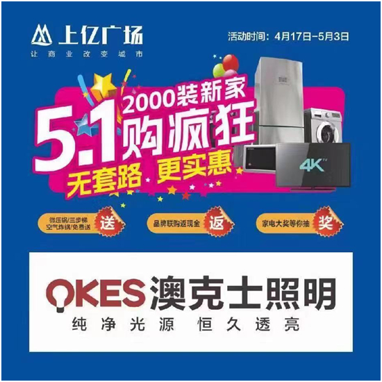 “五一”活動期間,澳克士照明推出各種優惠福利政策讓利廣大新老顧客,以優質、可靠的高品質照明產品更好地為消費者服務,幫助更多追求生活品質的人實現幸福理想人居。