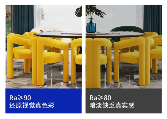 顯色指數(shù)這個非常重要,顯色指數(shù)越高越能還原物體本身的色彩,Ra≥90保證長時間伏案工作下,減緩眼睛的疲勞感。