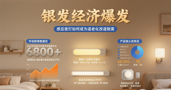 可以預見,隨著技術迭代與政策深化,感應夜燈將從“家居配件”升級為“健康監護終端”,成為銀發經濟生態中的關鍵節點。而這場以“安全”為起點的適老化革命,終將重塑中國老年人的生活方式,讓“老有所安”從口號變為觸手可及的現實。