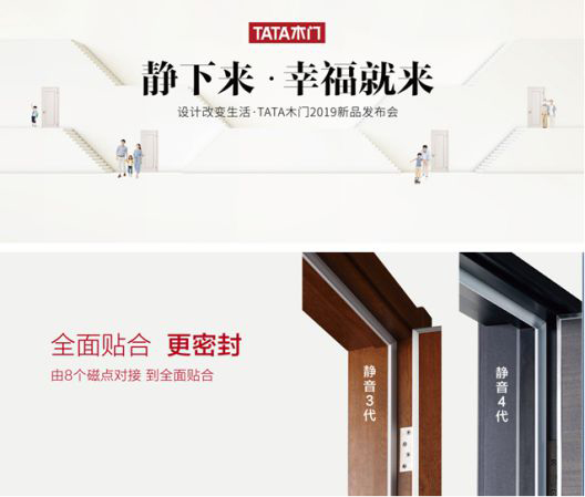 2019年新品發布會,TATA木門則攜手知名室內設計大師梁志天,以“靜下來,幸福就來”為主題,發布TATA第四代靜音門大師作品“匯”系列,8磁點全面對接、第四面封邊,用小設計解決居家生活中的大問題,帶來耳目一新的木門設計新體驗。