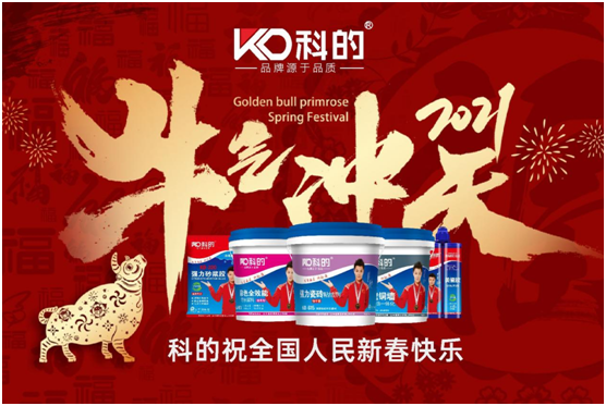 爆竹聲中一歲除,春風(fēng)送暖入屠蘇。伴隨著新春的喜慶氣息,科的涂料告別了充滿挑戰(zhàn)和蘊藏機遇的2020年,迎來了充滿希望、奮發(fā)進取的2021年。在此,科的涂料全體員工,向遍布全國各地、奮勇拼搏的科的涂料家人們,向長期關(guān)心支持科的涂料事業(yè)發(fā)展的各級領(lǐng)導(dǎo)、社會各界人士,向給予科的涂料真誠信賴的中外客戶及消費者朋友們,致以節(jié)日的問候和衷心的感謝。祝大家在新的一年里和氣致祥、事業(yè)順利、家庭安康、萬事如意!