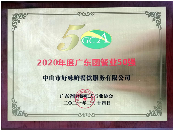 ·中山市好味鮮餐飲服務有限公司被授予“廣東團餐業50強”稱號!
