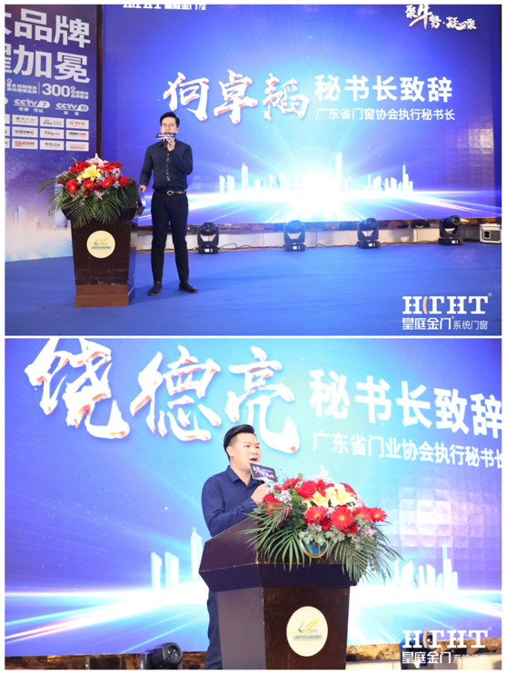 廣東省門窗協會執行秘書長何卓韜、廣東省門業協會執行秘書長饒德亮致辭