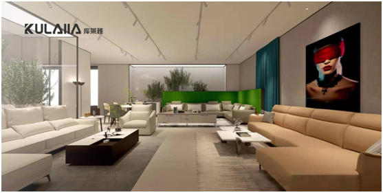 此外,庫萊雅的展廳無論從區域劃分還是技術展示上,都進行了大規模升級,消費者將可以更好地領略到潮流時尚、簡約軟體家居生活的魅力。例如,在展廳的設計中,將庫萊雅的英文logo“KULAIIA”融入其中,貫穿整個展廳。此舉不僅能讓來訪者看到有形的展廳形象,而且能通過“KULAIIA”的品牌logo的設計,無形中對該品牌產生一個直觀的認知:該品牌走時尚化、潮流化路線。