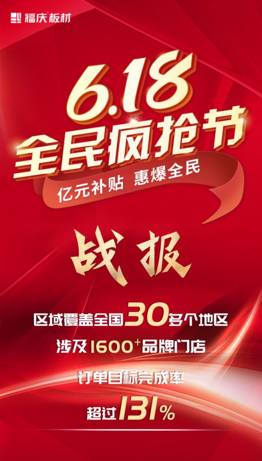 在疫情反復的今天,福慶板材6月響應政策穩經濟,助企惠民振市場,全國聯動全員上下一心,發起了億元資源助力終端市場的補貼活動,全力沖刺公司上半年既定目標。為終端合作商賦能,傾心陪伴攜手前行,惠民扶商展翅遠航。