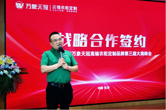 七月長沙,熱浪與商機共舞。27日,萬象天冠高端衣柜定制品牌第三屆大商峰會在旺德府·萬象時代15樓啟幕。