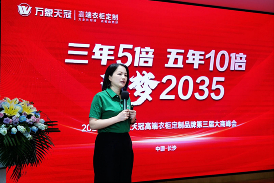 旺德府家居集團新零售定制業(yè)務中心副總經(jīng)理張孟華女士分享萬象天冠高端衣柜定制門店運營管理體系,以實例與成果展現(xiàn)亮眼表現(xiàn)。客流量、成交率、客戶滿意度三指標引領行業(yè),閉環(huán)體系的高效運轉,印證了萬象天冠品牌在終端市場的穿透力。