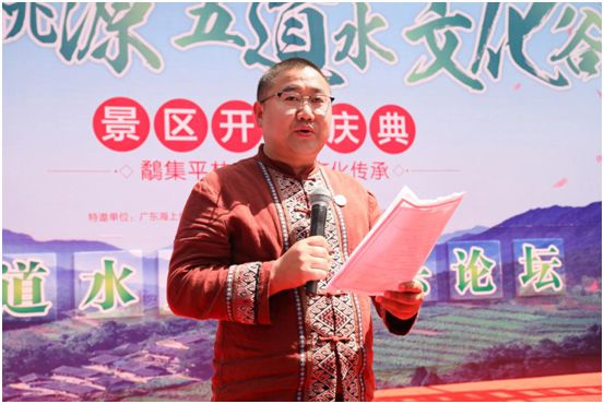 草長鶯飛,鼓聲振奮。在眾人的掌聲下,五道水文旅發(fā)展有限公司總投資人、廣東弦商文化傳播有限公司董事長余向強先生應(yīng)邀發(fā)表致辭,為本次開園慶典的成功舉行送上真誠的祝福。