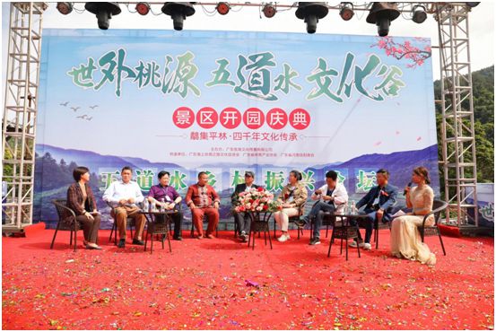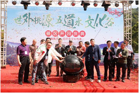在一片熱鬧的氛圍中,各位嘉賓一同上前進行剪彩,霎時禮炮齊鳴,人聲鼎沸。至此,世外桃源五道水文化谷景區(qū)開園慶典正式啟動。