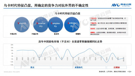 進入了更新換代周期的家電市場在疫情的催化下加速呈現出“后稀缺”特征:購買需求稀缺,產品供給過剩。行業的烏卡時代(VUCA)特征日漸凸顯,即行業充滿了不穩定性、不確定性、復雜性和模糊性。越是在這般復雜環境下,我們越應懂得精雕內功,以確定的競爭力對抗外界的不確定性。