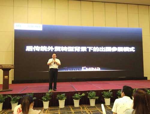 米奧蘭特國際會展董事長潘建軍為在場企業(yè)分享參展新模式