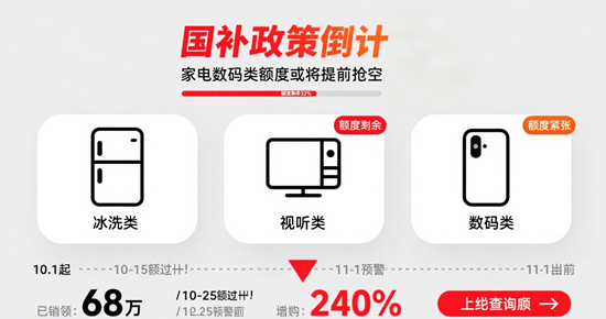 2025年8月29日,財(cái)政部第三批690億元國家消費(fèi)補(bǔ)貼(簡稱“國補(bǔ)”)資金已全面下?lián)苤粮魇。€上線下的申領(lǐng)通道同步重啟。根據(jù)官方明確的時(shí)間表,這輪覆蓋家電、數(shù)碼、汽車、家裝四大領(lǐng)域的政策紅利將于2025年12月31日24時(shí)正式終止,且“不設(shè)延期、不設(shè)補(bǔ)時(shí)”。然而,距離截止日期尚有4個月,多地已出現(xiàn)補(bǔ)貼額度告急的苗頭——重慶12億元家電補(bǔ)貼15天搶空、山東某市500萬元額度1分鐘內(nèi)秒光、深圳新增的13類家電補(bǔ)貼上線首日門店客流激增300%。業(yè)內(nèi)預(yù)測,在雙十一大促與國補(bǔ)疊加的效應(yīng)下,家電數(shù)碼類補(bǔ)貼額度或?qū)⑻崆?-3個月被耗盡,一場圍繞“真金白銀”的消費(fèi)競賽已進(jìn)入倒計(jì)時(shí)。