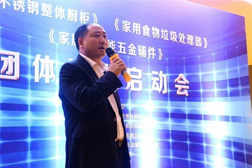 中國五金制品協會副理事長柳潤峰先生發言表示:“中國整體廚房行業雖然已經有了一些相關標準,但是隨著行業的發展、消費理念的改變以及產品的迭代更新,很多現有標準并不能完全適用于當前行業的發展,而且一些新產品尚無具體標準而言。為了響應國務院印發的《深化標準化工作改革方案》,我們將進行《家用不銹鋼整體廚柜》《家用食物垃圾處理器》《家居用功能五金輔件》三項團體標準的起草工作。本次啟動會就是希望借助廣大同仁的力量,大家群策群力用,用更高的水平制定更符合行業發展的標準,同時要融入更多創新元素完善我們的標準體系,而且這個過程要快,時間不等人,只有有了可參考依據的標準,行業才能更加健康地可持續發展下去。”