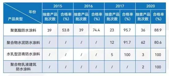 2015-2020年建筑防水涂料產(chǎn)品抽查統(tǒng)計表