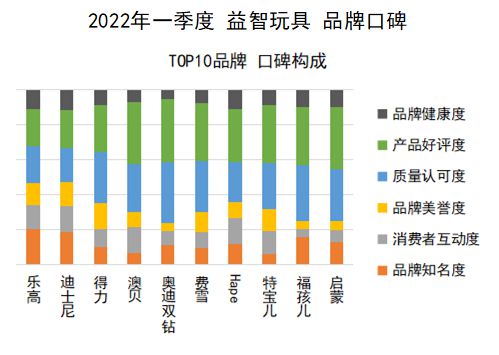 綜合來看,2022年一季度益智玩具TOP10品牌的口碑構(gòu)成如下圖所示: