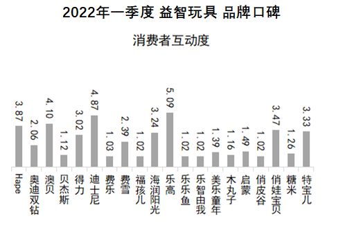 消費者互動度方面,樂高、迪士尼、澳貝位居前三。Hape、俏娃寶貝、特寶兒、海潤陽光、得力、費雪、奧迪雙鉆分列第四至第十位。