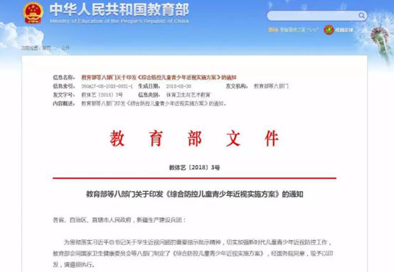 國家衛健委今年發布數據顯示,2018年全國兒童青少年總體近視率為53.6%,其中小學生為36%,初中生為71.6%,高中生為81%,近視防控任務艱巨。